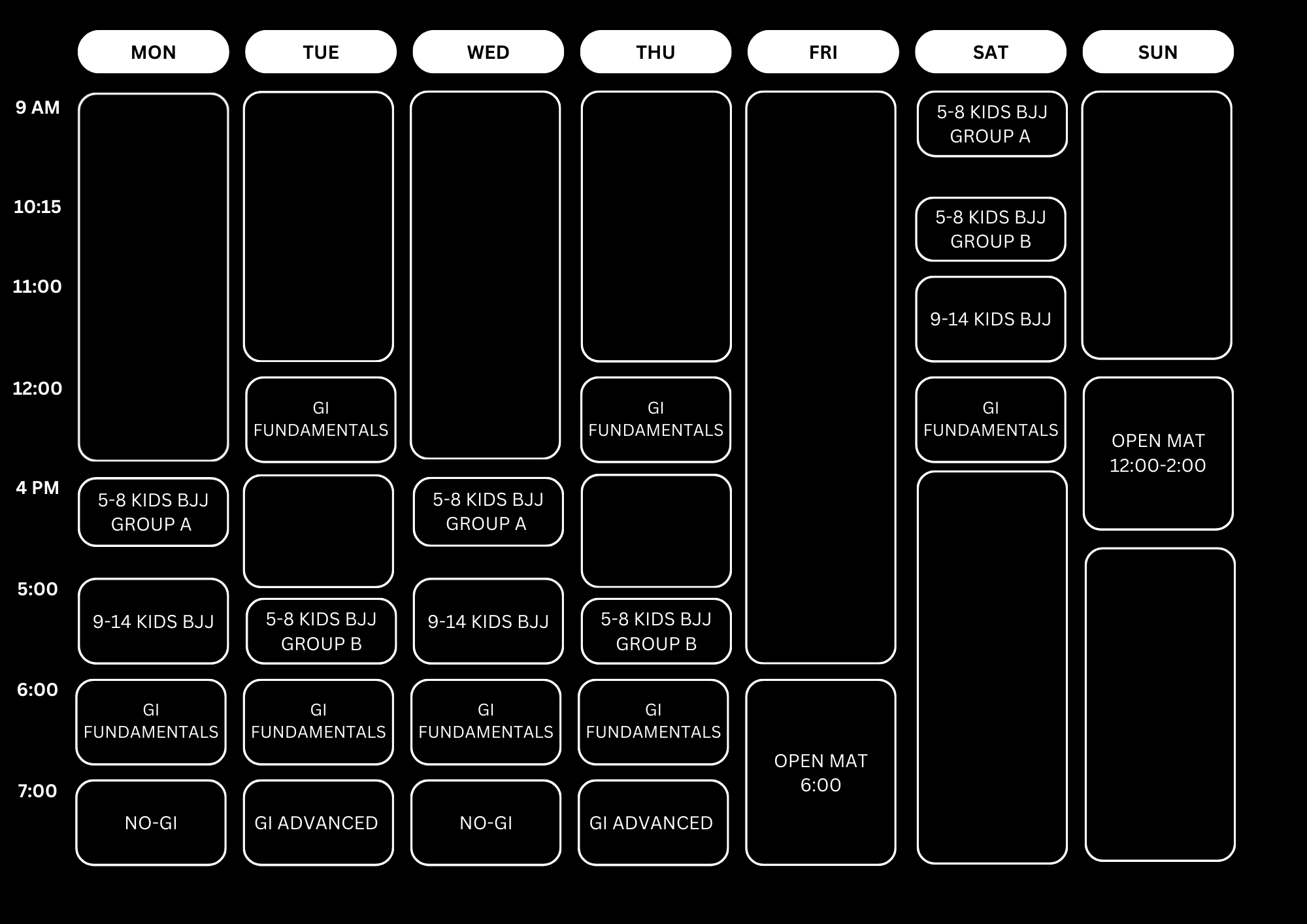 For experienced practitioners who understand the basics of Jiu-Jitsu. These classes explore advanced techniques, deeper strategy, and live rolling with an emphasis on control, pressure, and problem-solving.